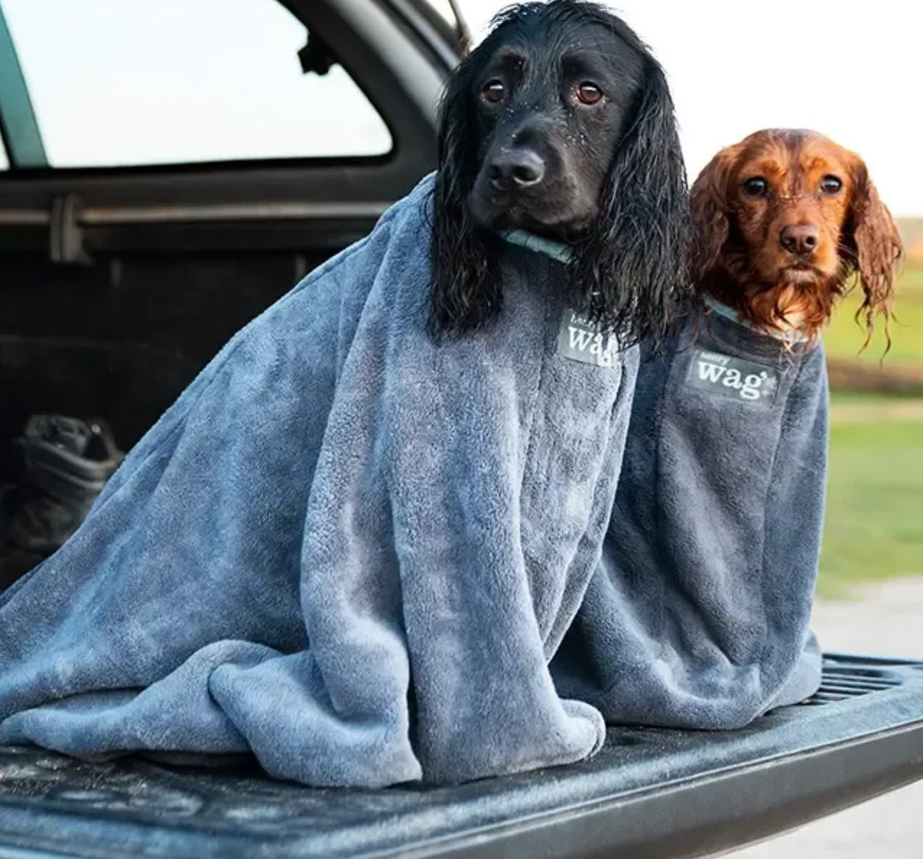 The Dog Drying Bag is crafted from high-quality, absorbent microfibre, making it highly effective at removing dirt and water from your dog’s coat.
