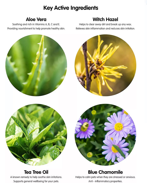 Keeping your pets ears clean is vital for optimum ear health, and this has never been easier with these finger wipes! The wipes are easy to use, and gentle on your pets ears. Wipe away the daily dirt, ear wax, and keep their ears smelling and feeling fresh. The natural ingredients have carefully selected to include Aloe Vera, witch hazel, tea tree oil and blue chamomile extract, which collectively provide a soothing experience for your pet.