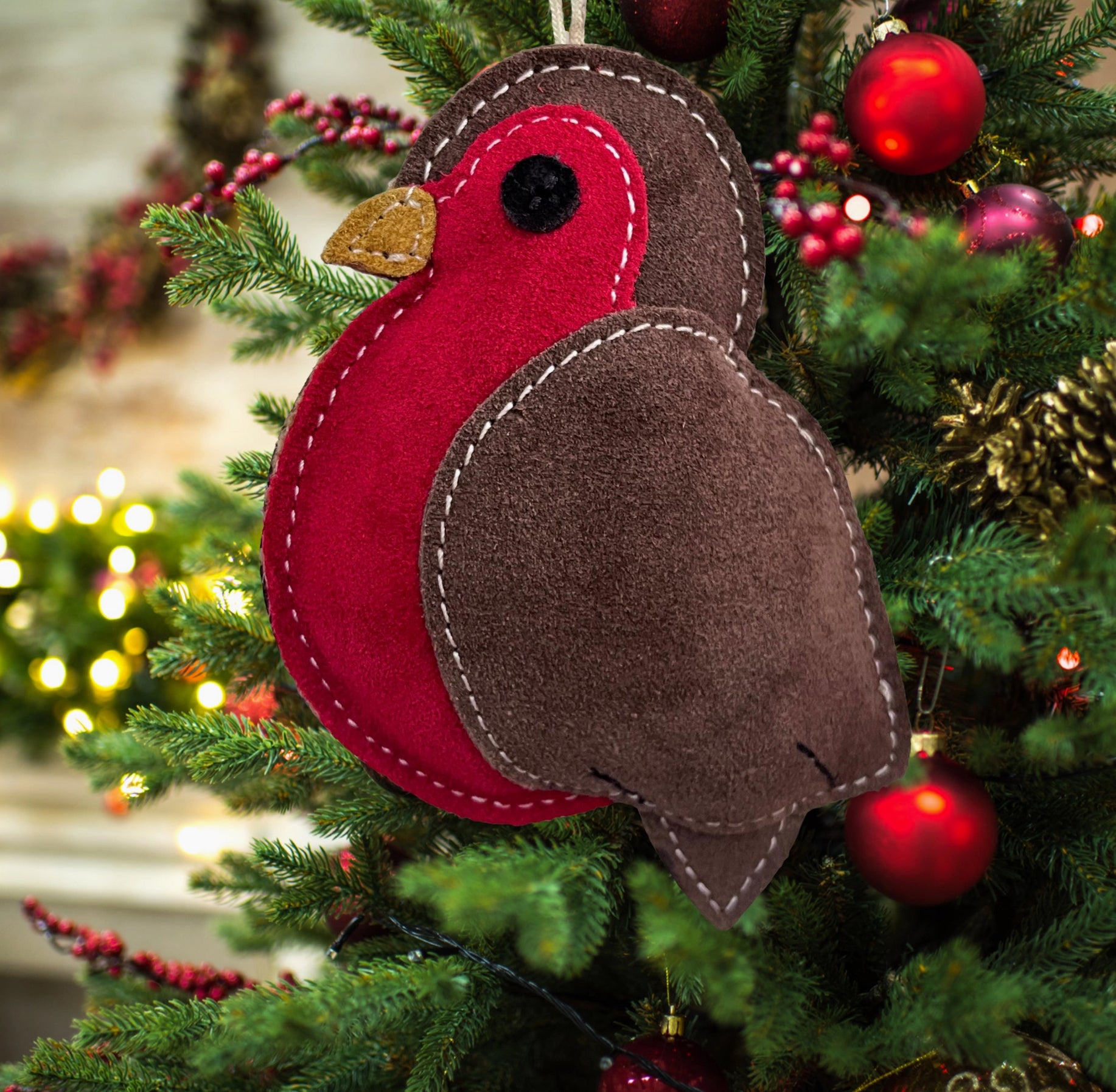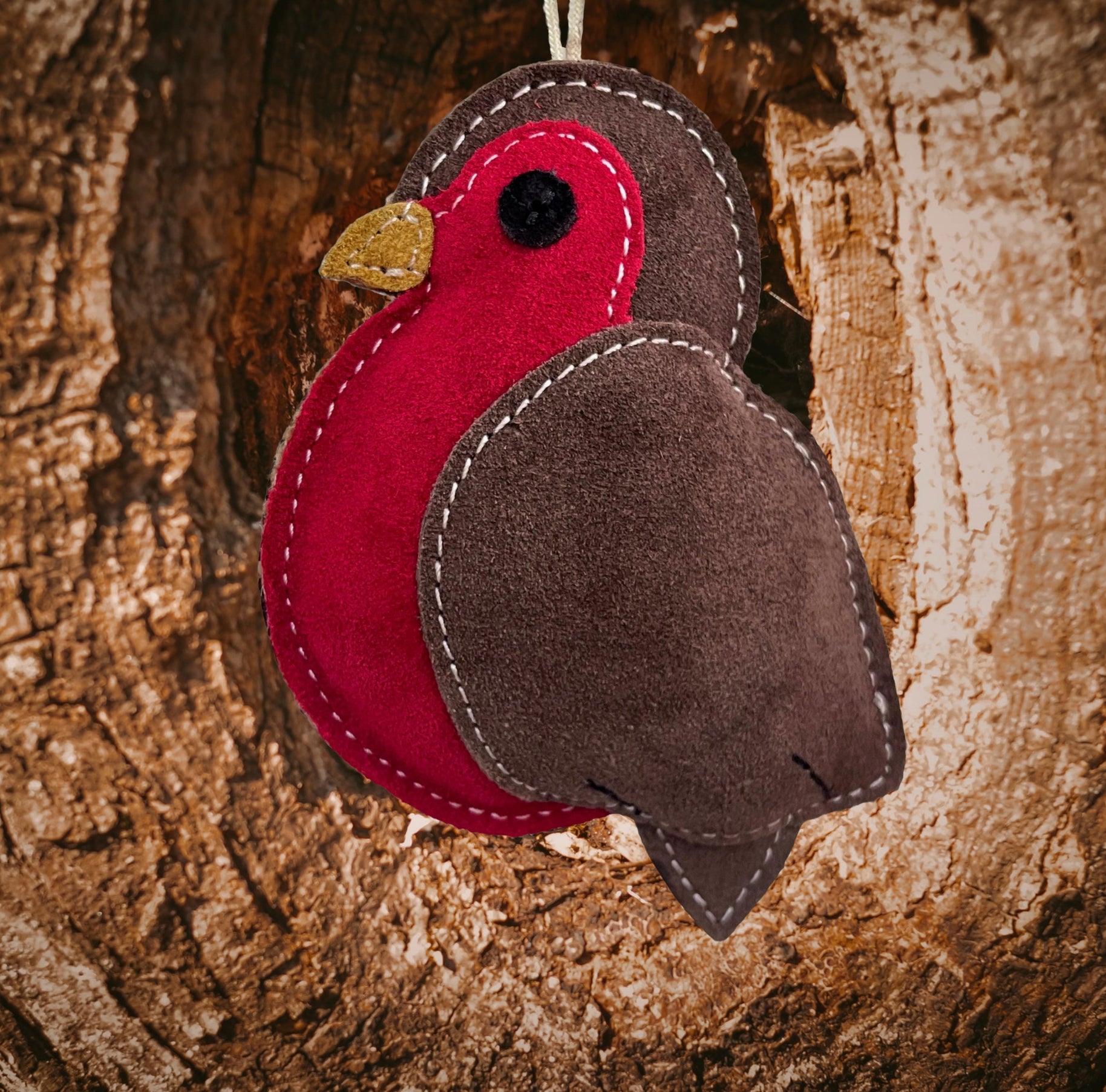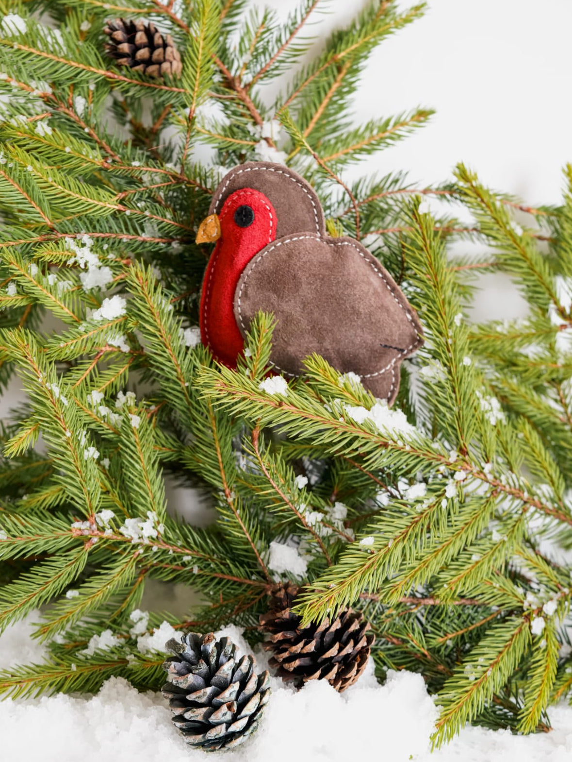 Rodney the Robin shaped dog toy is made from a 100% suede outer layer and coconut fibre filling.