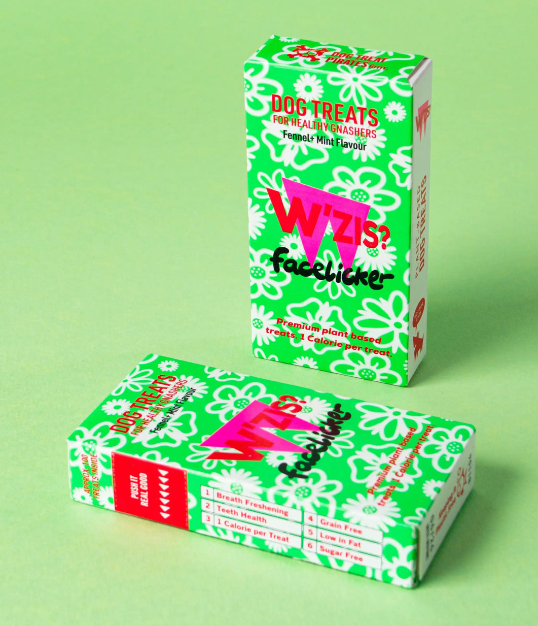 Infused with fennel, mint, coconut oil, spirulina and parsley, these treats have active ingredients to attack plaque, freshen dog breath and enhance the face licking experience.